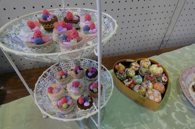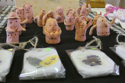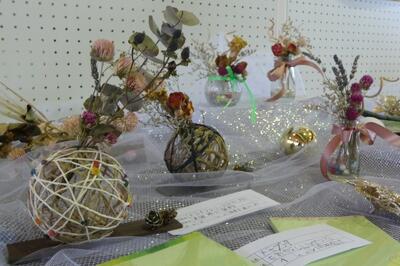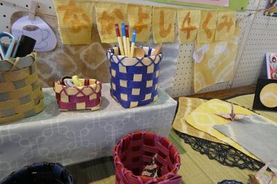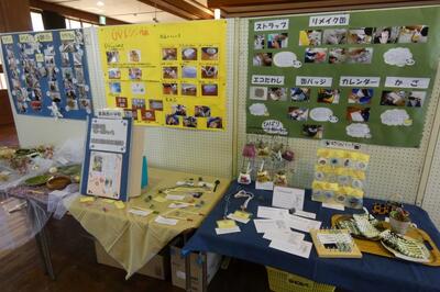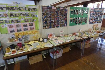 「なか・ひばショップ」を紹介した新聞記事や、それぞれの作品の制作の様子が展示されていました。