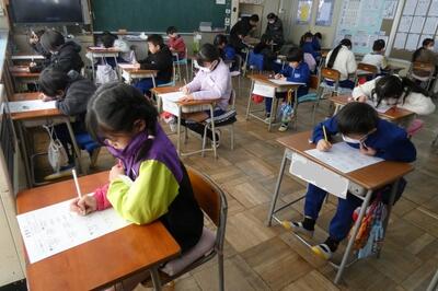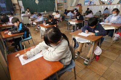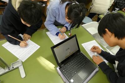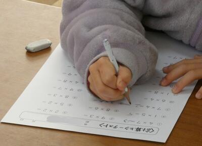 かけざん九九のテストを頑張っている2年4組の皆さん。