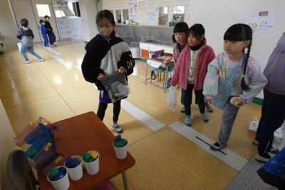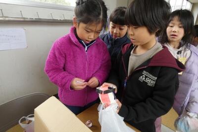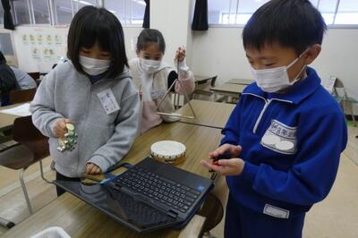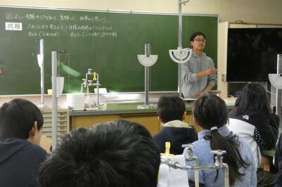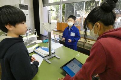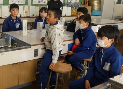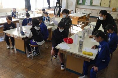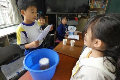 実験に当たっては、先生が「班全員の心を合わせて」「正確に」と子供たちに大切な心構えを話していました。