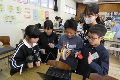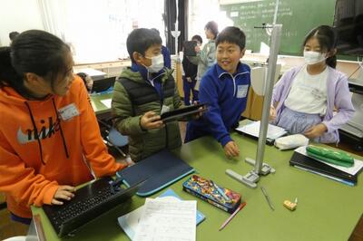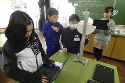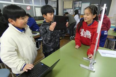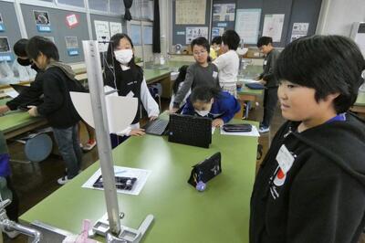 子供たちは、実験の操作、振れた回数カウント、計時、動画記録などと班で役割を分担し、協力して実験を繰り返していました。