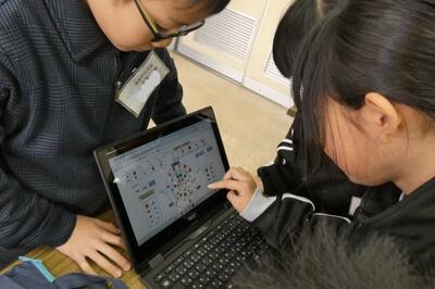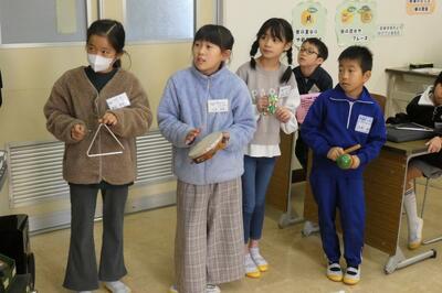 後半は、前に出てきてお互いに発表を聴き合いました。1班の曲名は「楽しすぎるなめらかな音楽」だそうです。