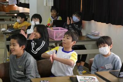 発表を聴いて拍手する子供たち。 感想を述べてくれた児童もいました。