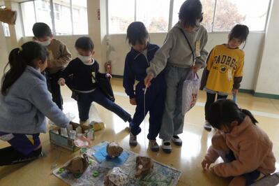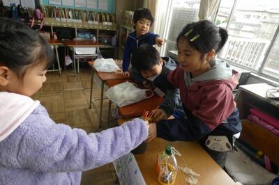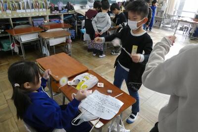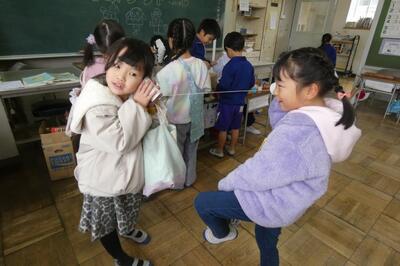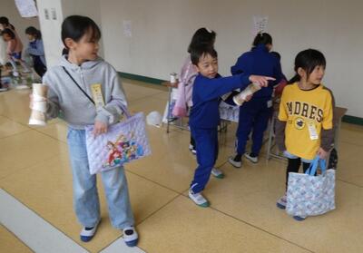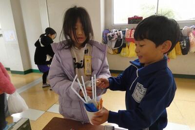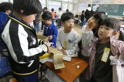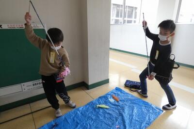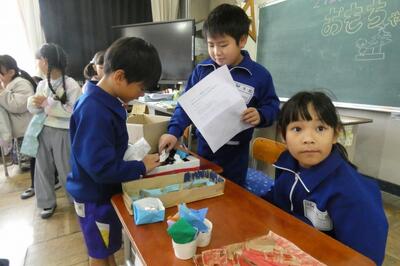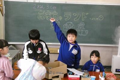 今週、2年生が1年生を招待して一緒に遊ぶ「おもちゃランド」が行われました。