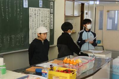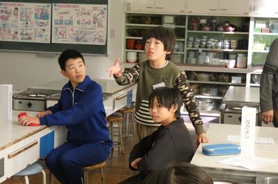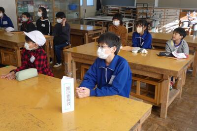 家庭科室は北棟2階にあるのですが、野菜を炒める甘いいい匂いが、南北に渡る廊下を伝って、南棟2階の2年生教室まで届いていました。2年生からは「いい匂いがする!」「美味しそうな匂い!」という声が、だんだん大きくなっていきました。