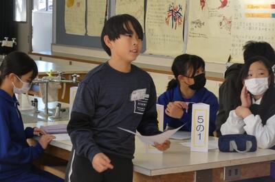 各学級代表の児童が、自学級の話合いで挙がった意見を紹介していました。