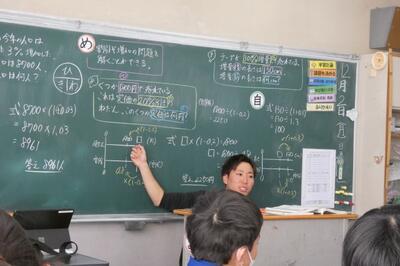 算数の授業では、子供たちが「割合」「基準量」「比較量」の3つがそれぞれ何なのかを整理し、正しく捉えられるように指導しています。この問題では、未知数である靴の定価が「基準量」、値引き後の売価1800円が「比較量」に当たります。