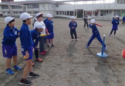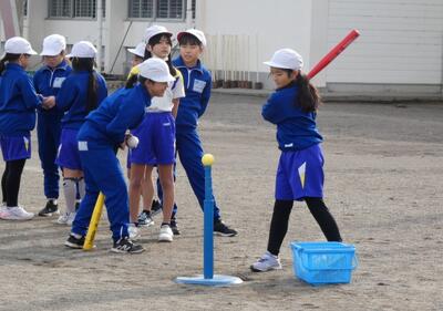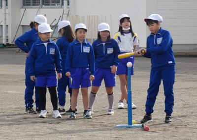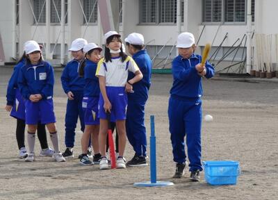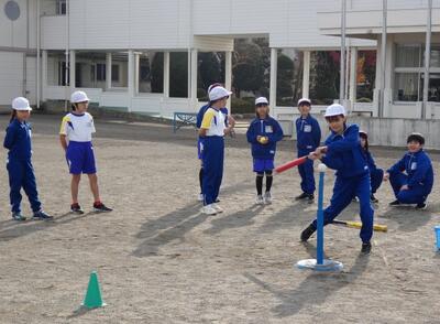 4年3組の体育科の授業におジャマしました。ティーボールの学習も3時間目とのことです。その様子をご覧ください。