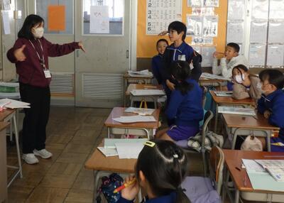 出てくる単語は耳にすることがあるものが多いので、子供たちはジェスチャーを交えて英語を使った表現に慣れ親しもうと頑張っていました。