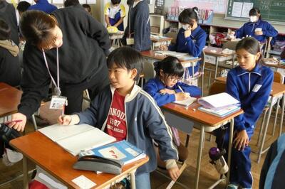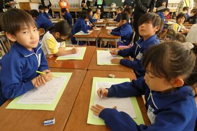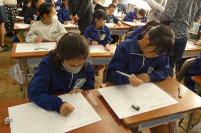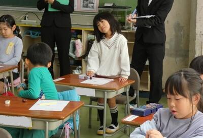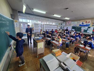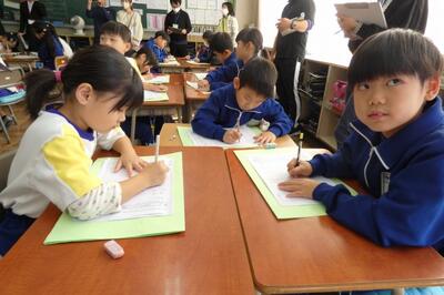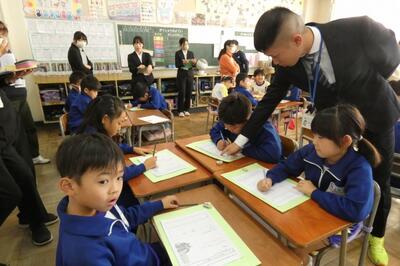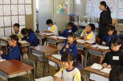 今週から後期の教育実習が始まり、現在3人の大学生が実習に励んでいます。今日は、1年生教室で研究授業が行われました。実習生の皆さん、子供たちと一緒に頑張っています!