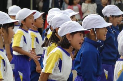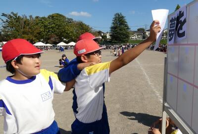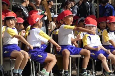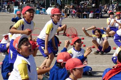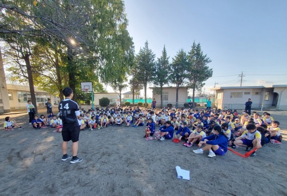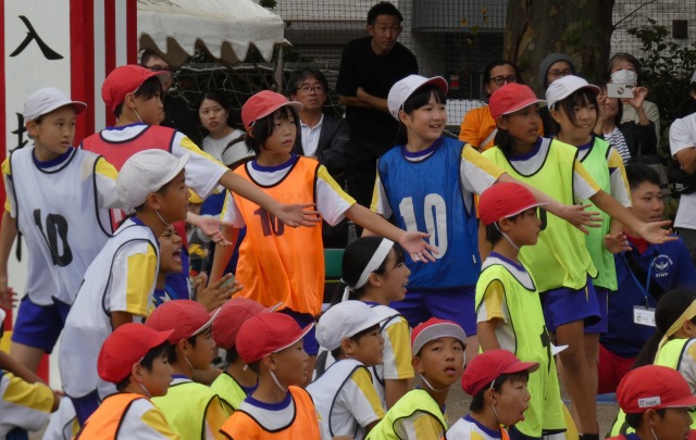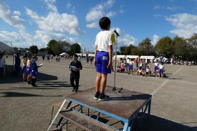 係活動がひととおり終わって、体育主任が子供たちに労いの気持ちを伝え、明日はみんなでいい運動会にしようと話しました。