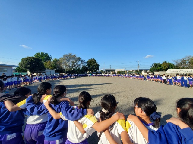 最後にみんなで輪になって、みんなで最高の運動会をつくろうと、声を掛け合いました。