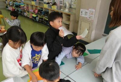 子供たちは作品を友達や先生に見てもらって、たくさん褒めてもらっていました。