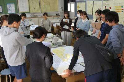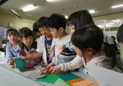 友達の作品づくりの様子を見たりおしゃべりしたりしながら、友達の作品のよさに気付いたり自分の作品づくりに生かしたりしようとしていました。