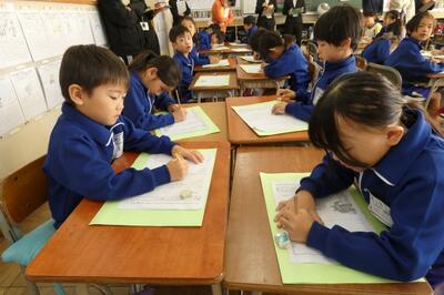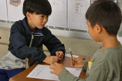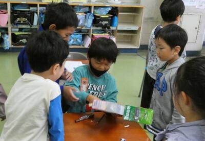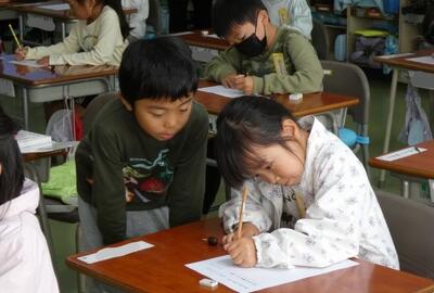 その後、子供たちは、授業や休み時間などに出会った動物や昆虫について、自分の「はっけんメモ」を作っていました。