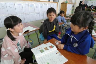 2年2組の国語科の授業におジャマしました。教科書にある「ニャーゴ」というネコとネズミのお話で、主人公のネコの気持ちを想像し、それを基に音読の仕方を考えました。