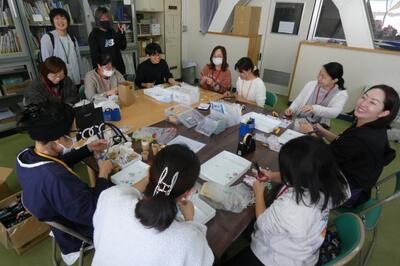PTA厚生委員会の皆さんが回収したベルマークの整理を行っているところをおジャマして、写真を撮らせていただきました。いつもありがとうございます。
