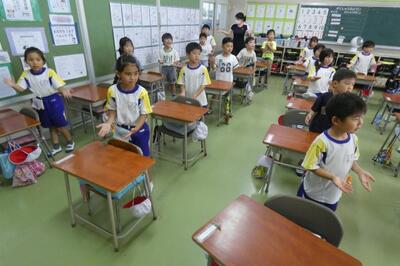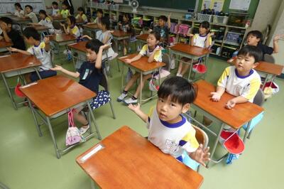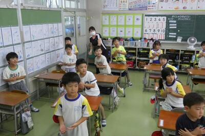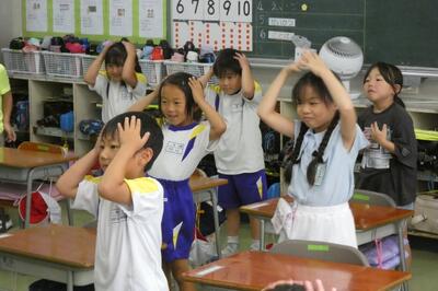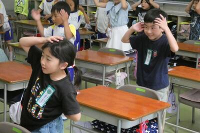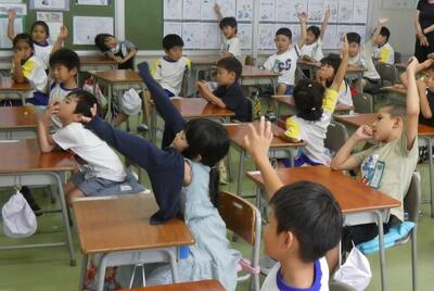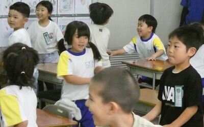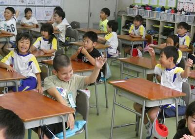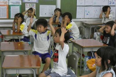 子供たちは、先生のマネをして、発音(声)だけでなく、ジェスチャーを豊かに交えながら、上手に表現していました。