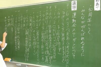 ご覧のとおり、西小50年にピッタリの、素晴らしいスローガンをみんな考えてくれました!