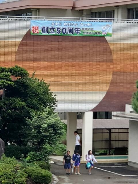スローガンの中には、西小校歌の歌詞が入っています。