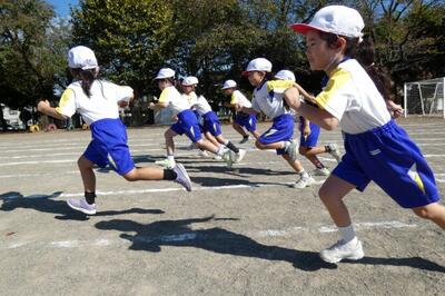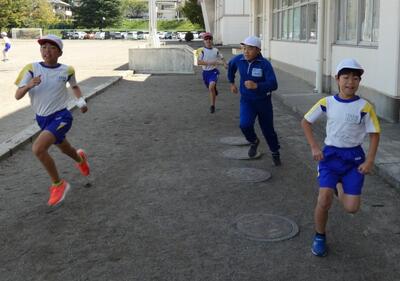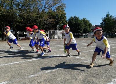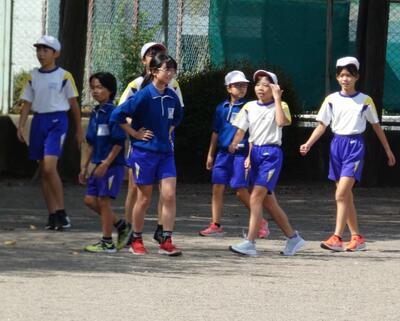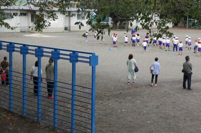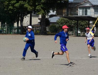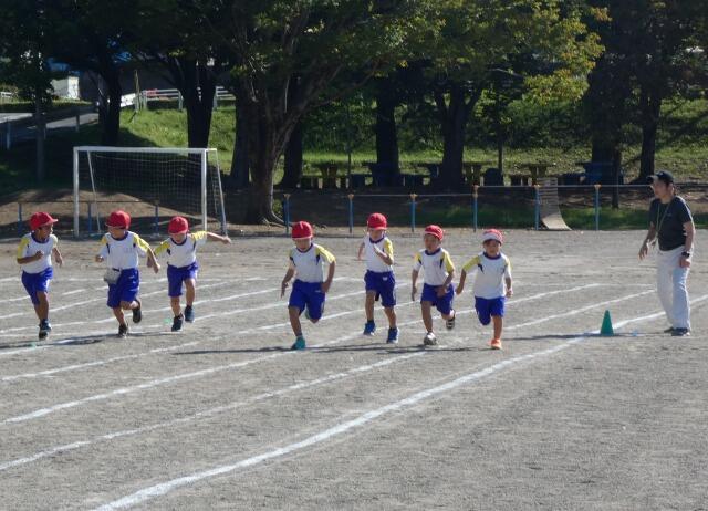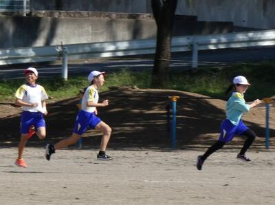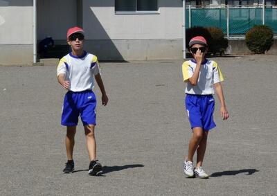 同じ時間、北校庭では1年生がかけっこをしていました。「〇〇ちゃん、ガンバレー!!」と声援が聞こえてきます。