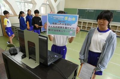 昼食後にオンラインで行われた全校集会で、児童会運営委員会の皆さんから、今年の運動会のスローガンの発表がありました。