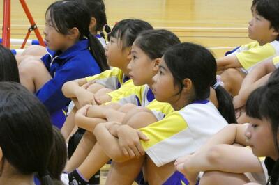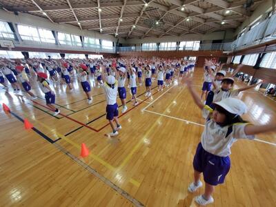 運動会の練習が本格的に始まりました。写真は1・2年生の表現(ダンス)の練習風景です。