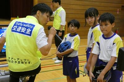 県内では、自転車が関係するケガを伴う交通事故が、1日平均3件起きているとのことです。講師の先生は、ヘルメットをかぶることや一時停止、自転車が走る場所の決まりのほか、傷害保険についても触れていました。