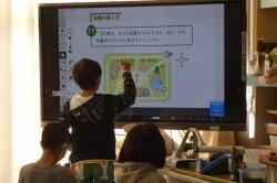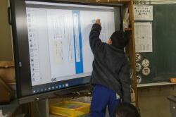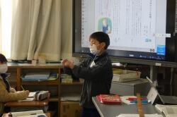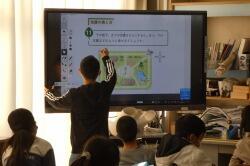 自席での発表にもの足らず、電子黒板まで出て説明していました。
