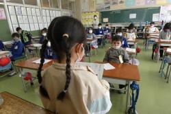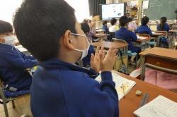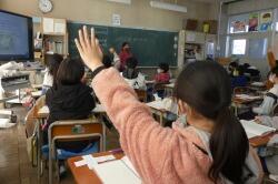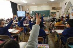 問題が解き終わったときです、冒頭の両手をあげる児童が見られたのは。