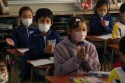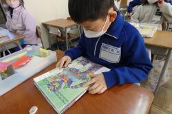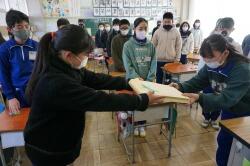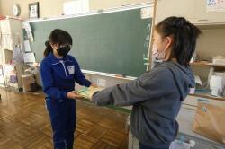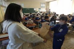 6年生から下級生へのプレゼントもあります。6年生の代表が1~5年の各教室へ向かいます。