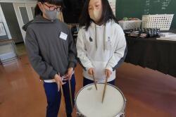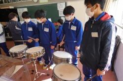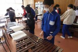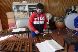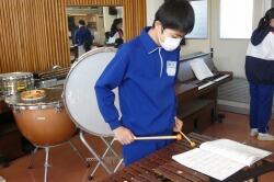 コロナ対策で飛沫が飛ぶような楽器は演奏できませんので、打楽器のみで合奏の練習をしています。