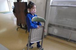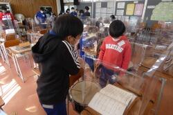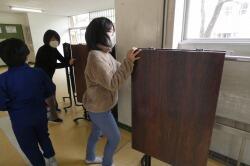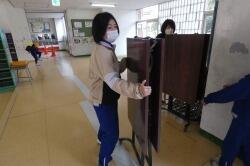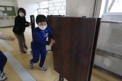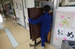 昨日、ワックスがけを行いました。教室の机やテーブルなどは廊下に出してあり、それを今朝、もとに戻すことが必要です。ある特別教室では進んで手伝っている姿が見られました。