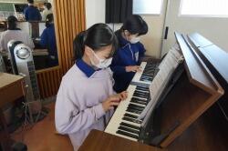 2年生の音楽では曲を聞いて何拍子かを考えていました。手拍子をしながら聞いてい