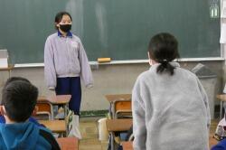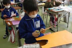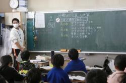 図工なのかと思いましたが、どうやら違うようです。子供たちが先生の話を聞いています。