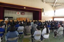 昼休みに全校集会を行いました。内容は校長講話と表彰です。