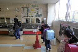 8時前、何かを持って水道へ向かう児童が。後をついていくとこのような光景が見られました。