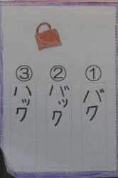 撥音、促音、長音、拗音など、これまで学習してきたことを生かして問題が作られています。ことばの時間での1年間の学びの成果が見て取れますね。