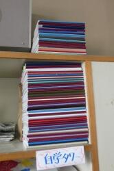教室前面の棚とその上には使い終わった自主学習ノートが積み重ねられています。自学タワーです。その数89冊。「あと少しで100冊です。」「今日、1冊終わりにします。」「毎日、1冊ずつ終わそうかな。」といろいろな子供から声があがりました。100冊までがんばろうと意気込む3年生です。100冊達成を祈っています。