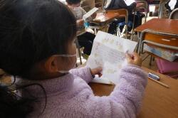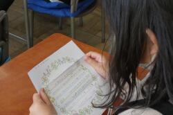 命の不思議さ、尊さを学んだあと、親御さんが書いた子供あての手紙が配られ、子供たちが読みました。