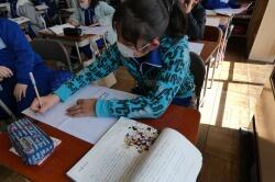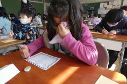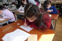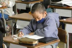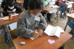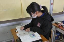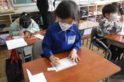 親御さんへのあふれる想いが止まらず、書きながらハンカチで涙をぬぐう児童が見られました。
