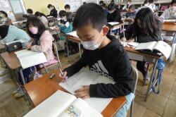 4年生の国語では、漢字の学習をしていました。書いていた漢字は「潟、岐、阜、茨、栃」などです。