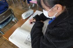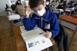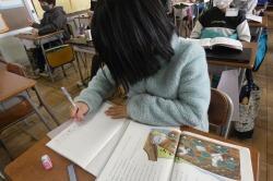 となっています。後半は各児童が自分のペースで問題を解いていました。教科書の問題に取り組んでいる児童です。