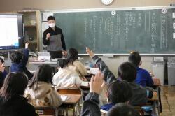 5年生の国語科で、子供たちが先生の話を真剣になって聞いている姿が見られました。