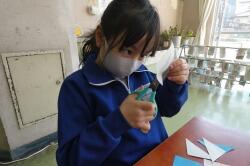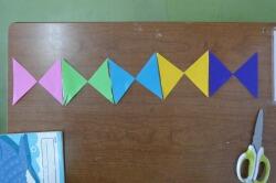 切った折り紙の操作活動を通して、ものの形に関心を高める子供たちでした。
