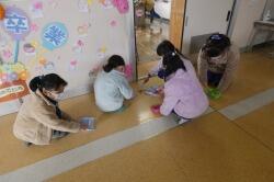 昨日のワックスがけで廊下に出した机やいすを元に戻すと、廊下にほこりが残っていました。それを見た子供たちがほうきとちりとりできれいに清掃してくれました。