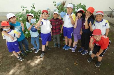 昼休みに写真を撮っていたら、子供たちが集まってきました。「ハイ、笑って笑って。」