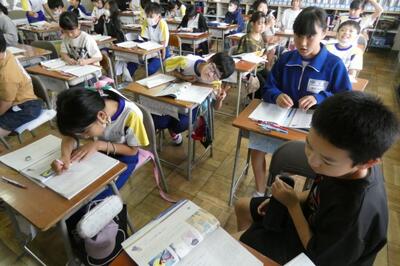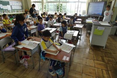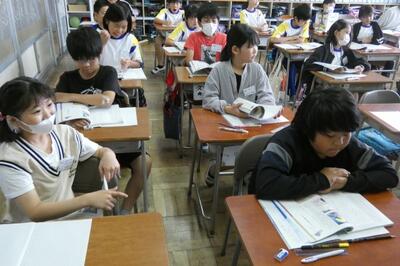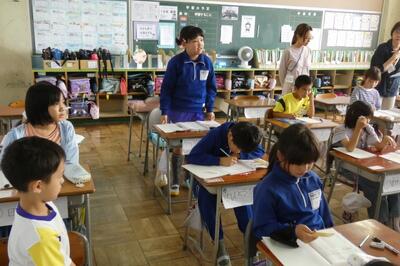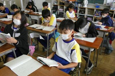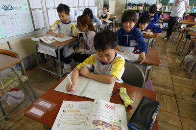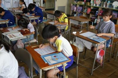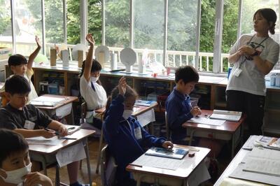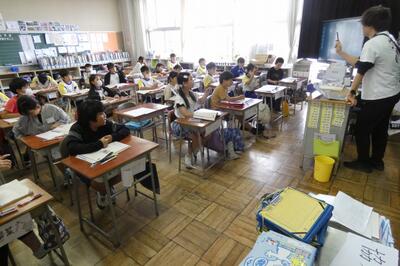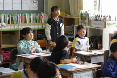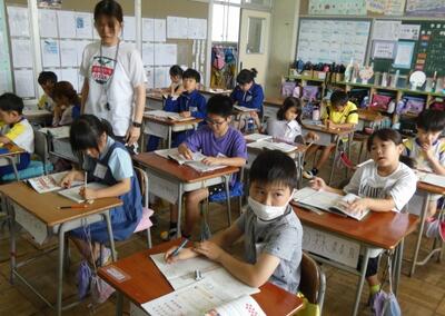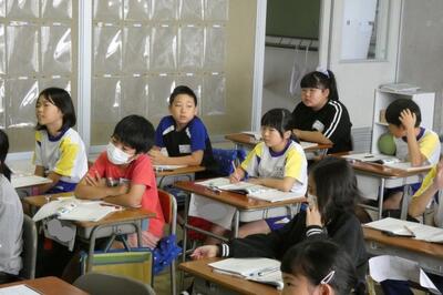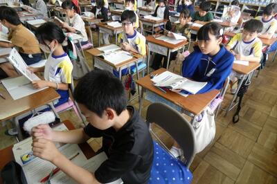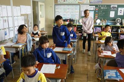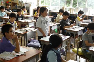 「響きやリズム感に注意して聞きましょう」と、担任の先生が子供たちに語りかけます。