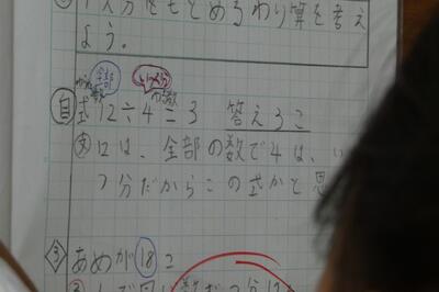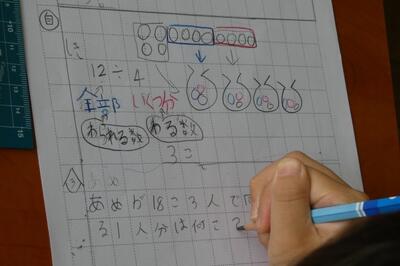 後半は、「1人分は何個になりますか?」と似た問題をたくさん解きました。中には「もっとやりたい!」という声も・・・。みんな頑張りました!