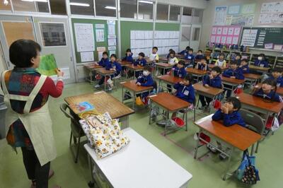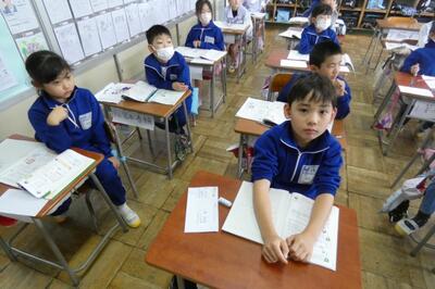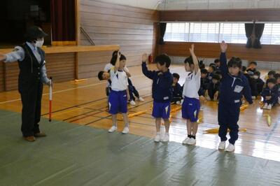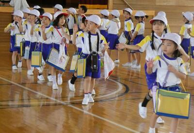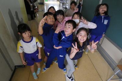 6年生にお礼をして教室に帰る1年生。一生懸命手を振っていました。