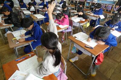 授業を終え、子供たちにインタビュー。子供たちは興奮しながら、